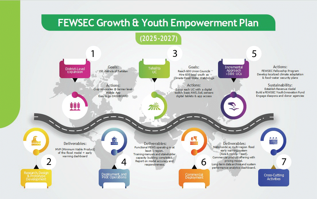“At FEWSEC, our purpose is clear: to transform climate knowledge and scientific insight into actionable intelligence that strengthens Food, Energy, and Water security across Pakistan. As climate variability intensifies and extreme events become more frequent, traditional approaches are no longer sufficient. Decision-makers today require forward-looking, science-based intelligence that not only explains risks, but enables timely and informed action. FEWSEC was established in 2024 to meet this very need. We have brought together a multidisciplinary team of experts in climate science, meteorology, agriculture, hydrology, GIS, IT, soil sciences, and plant pathology—combining decades of experience with modern analytical and digital tools. Our strength lies in translating complex climate science into practical, decision-ready solutions that serve farmers, energy utilities, water managers, government institutions, and the private sector. FEWSEC operates through three integrated pillars—Climate, IT, and Agriculture—delivered via our flagship climate intelligence solutions: MMK for food security, PMEW for water and flood management, and CIEM for energy management and climate resilience. Together, these solutions address the full Food–Energy–Water nexus, enabling proactive planning, risk reduction, and resource optimization. As Founder and CEO, I am committed to positioning FEWSEC as both a trusted Climate Intelligence Consultancy and a credible Climate Intelligence Agency—one that bridges science, technology, and real-world decision-making. Our focus is not merely on forecasts, but on impact: protecting livelihoods, strengthening systems, and supporting sustainable growth. With our partners and stakeholders, we are turning climate challenges into informed opportunities—empowering communities, businesses, and governments to make smarter decisions for a resilient and secure future for Pakistan and beyond.”